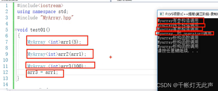 // MyArray <int>arr2(arr1); //拷贝构造