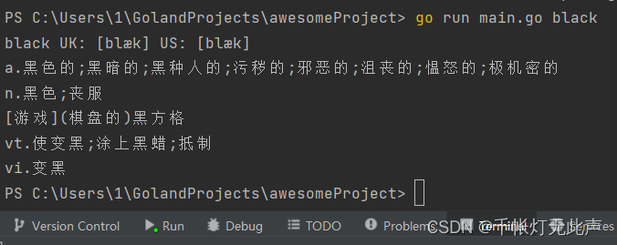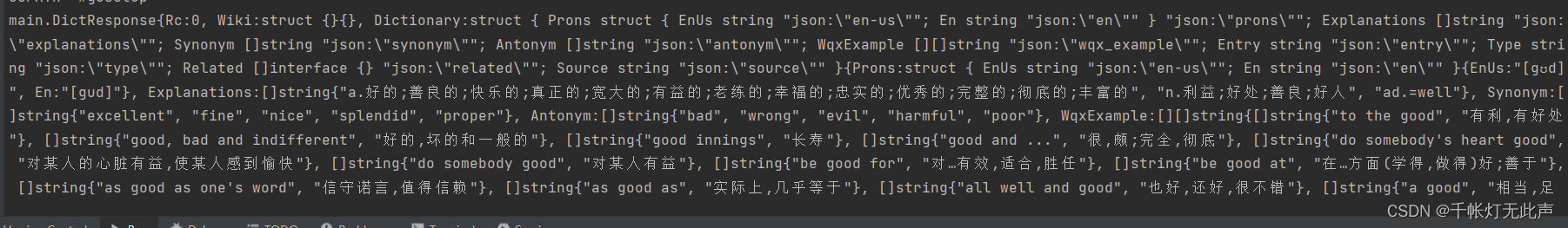 注意!run时,要点func main()左边的绿色▲,而不是右上方的虫子和▲