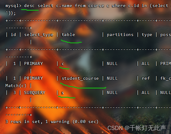 再用explain / desc看看执行顺序👇
