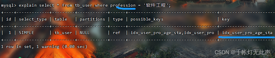 possible_keys可能的索引,key实际使用的索引