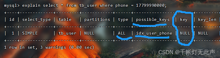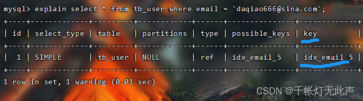 接着explain查看索引👇