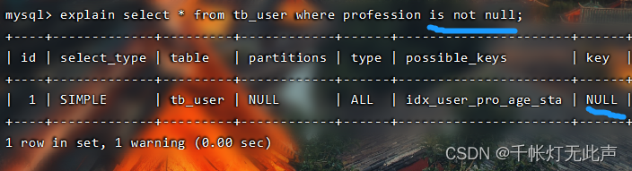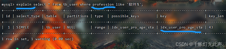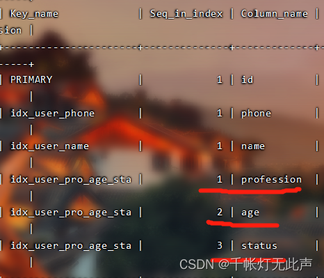 这次跳过 profession(索引最左边的列),索引全部失效👇