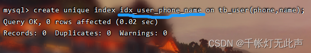 create unique index idx_user_phone on tb_user(phone);