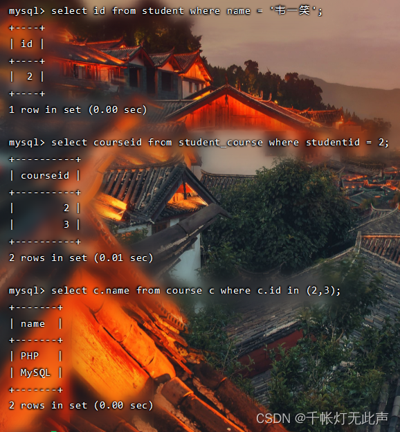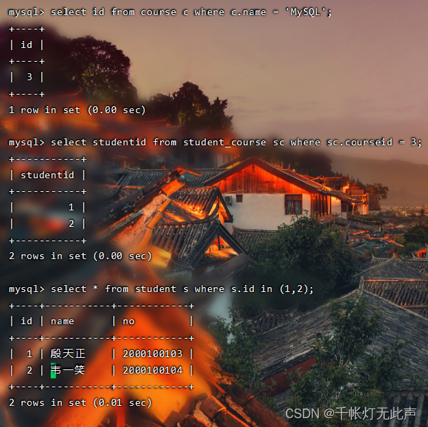 查询选修了Mysql的学生👇(1)分3步实现