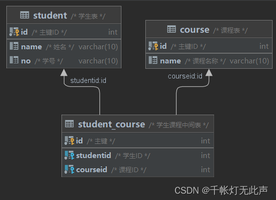 )comment '学生课程中间表';