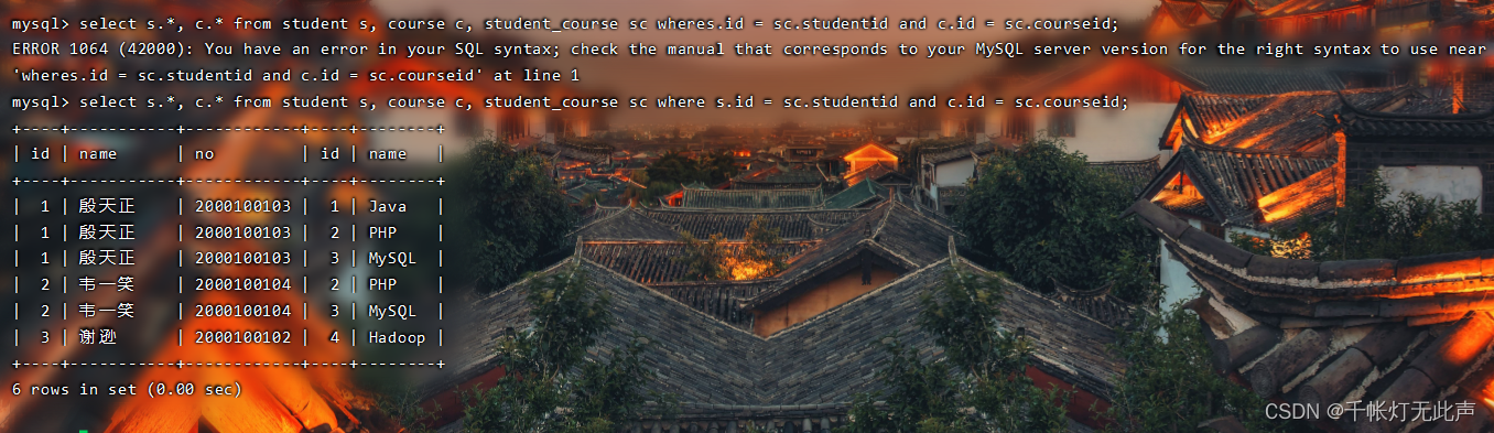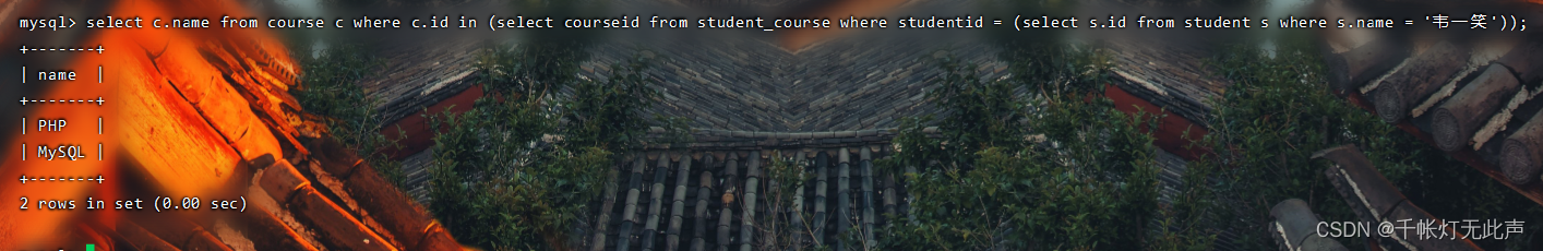 类似的,自己可以再写一个,查询韦一笑选修了什么课程👇