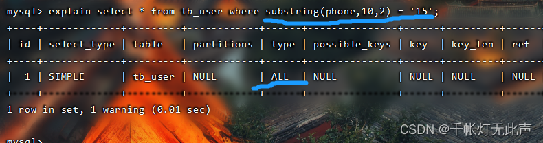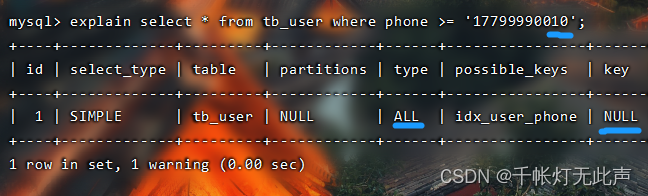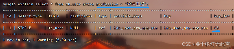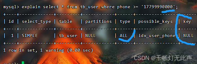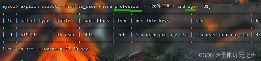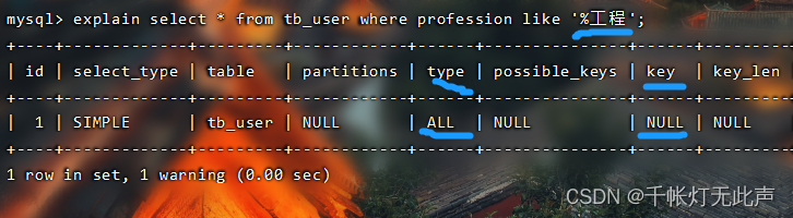 而且 type = all,全表扫描👆,因为不满足最左前缀法则