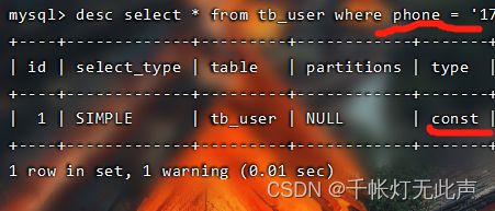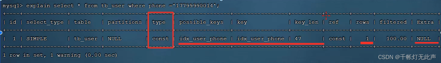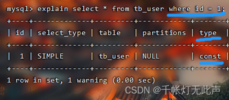 根据 主键 或 唯一索引 访问,才会出现const👇比如