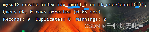 create index idx_user_email on tb_user(email);