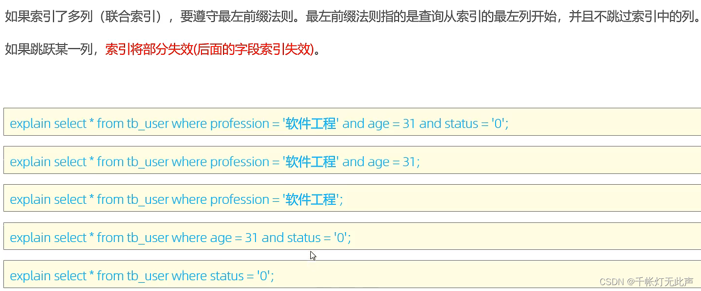 除了 最左前缀法则,还有 范围查询👇