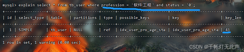 (1)由索引长度,status 失效了