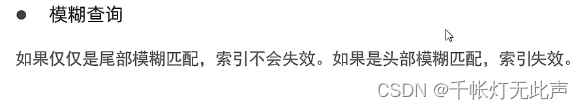 总之前面不能加 % 和 _,大数据查询下,会全表扫描,大数据下性能较低