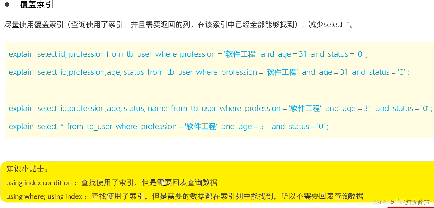 一般using index condition对应select *