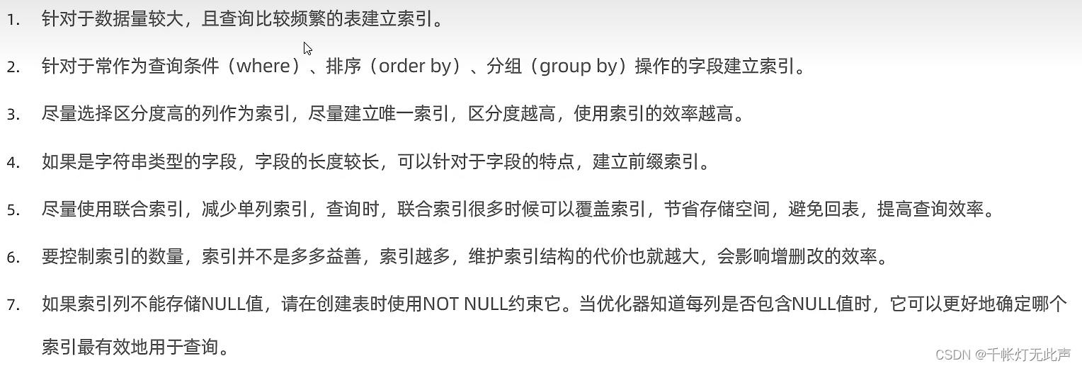 (1)比如,100万条数据,就需要建立索引,而几千几万条数据是不需要的
