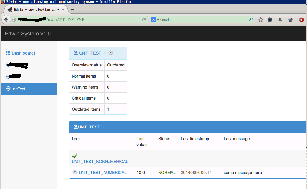 UnitTest分页, 能看到该page下所有的监控item的情况.