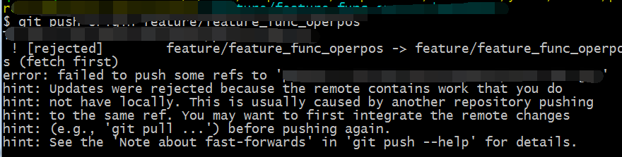 hint: See the 'Note about fast-forwards' in 'git push --help' for details.