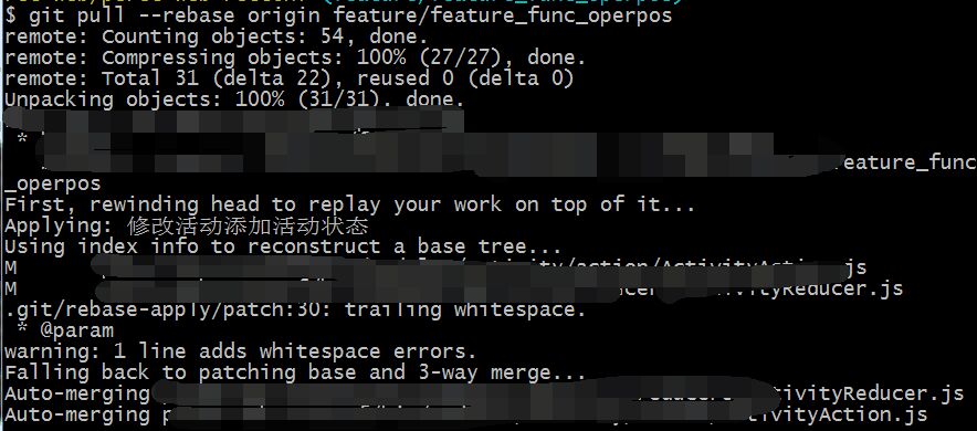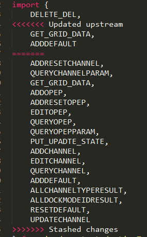 3: git stash pop //合并代码到本地仓库 此时代码是将暂存的代码和远程仓库的代码合并,如下图: