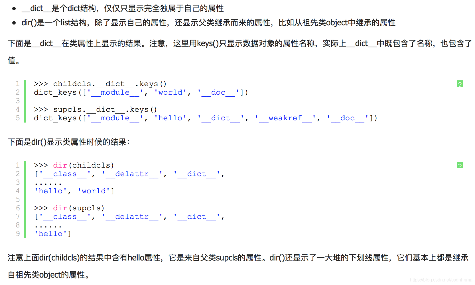 dir()与 __dict__区别:__dict__是字典结构,dir()是列表结构 ( dictionary字典 direct直接关系)