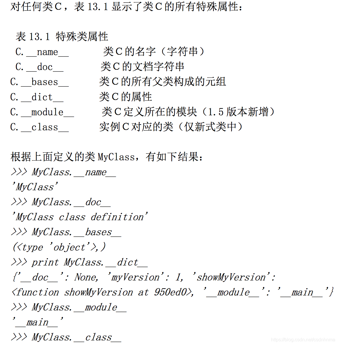 --访问类的字典属性__dict__,这是所有类都具备的特殊属性之一。MyClass.__dict__,返回的是字典,是属性名和属性值的键值对