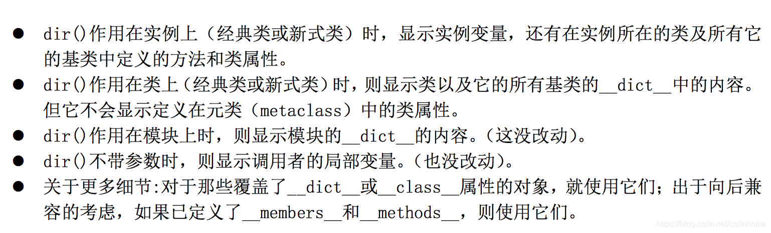 --使用dir()内建函数dir(MyClass) 返回的是对象的属性的名字列表;