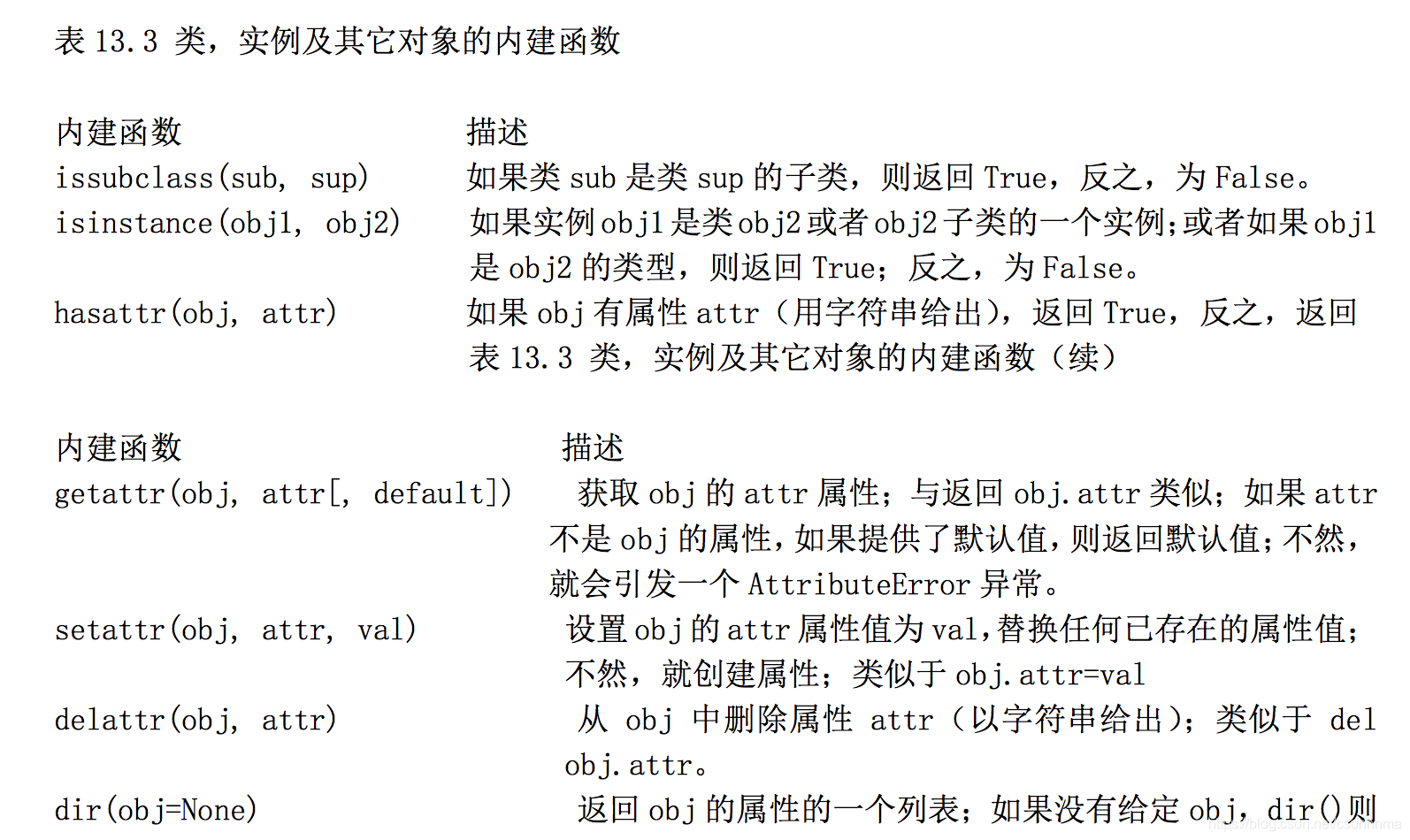 issubclass() 布尔函数判断一个类是另一个类的子类或子孙类。语法: issubclass(sub, sup)