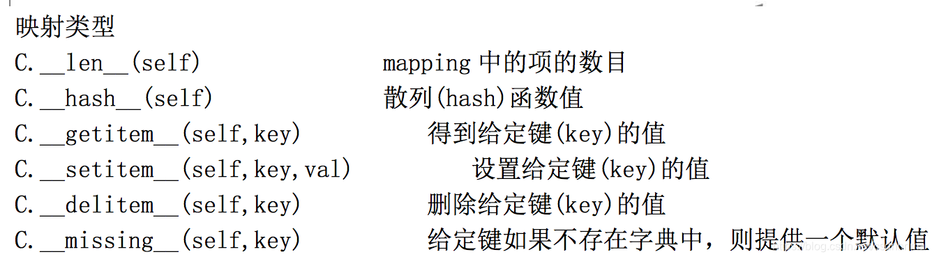 两个特殊方法可以分别作为构造器和析够器的功能,分别名为 __init__()和__del__()。它们中的一些有预定 义的默认行为,而其它一些则没有,留到需要的时候去实现。这些特殊方法是 Python 中用来扩充 类的强有力的方式。它们可以实现: