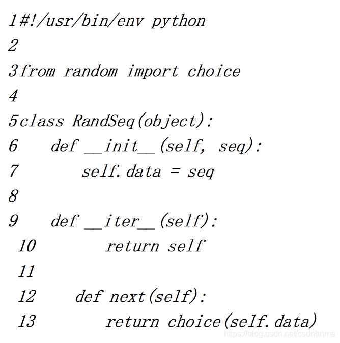 创建迭代器对象------⚠️一个实现了 __iter__() 和 next() 方法的类可以作为迭代器使用.