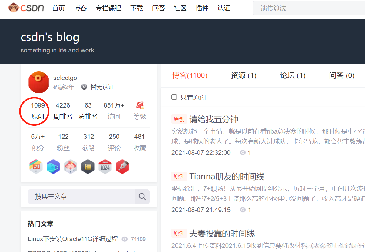 后来决定在1024篇文章的时候,在写文记录下,可以也因为太忙了,不知不觉就过去了,所以等到1100篇的时候,在发文章记录下,刚才不知不觉发现已经1099了,想着就记录下这个特殊时刻吧,这篇文章发过去了,就是1100篇了。