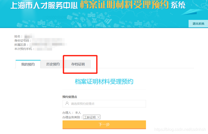 去办理就业创业证(常规说的劳动手册),关于那个存档证明的事情,可以自己自组打印出来,打印网站:http://weixin.shrc.com.cn:8080/rcdasb/login.jsp,访问速度比较慢,大家多写耐心: