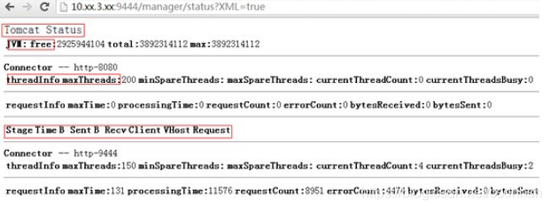 [root@squid-2 scripts]# /usr/bin/perl tomcatstats.pl 10.xx.3.xx:9444 'tomcat' 'xxx’ http-9444