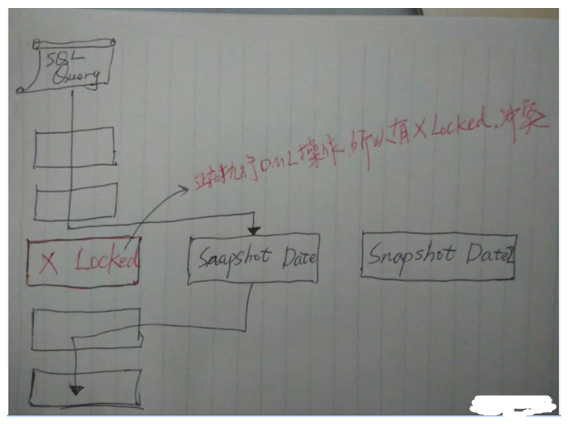 一致性的非锁定行读(consistent nonlocking read,简称CNR)是指InnoDB存储引擎通过行多版本控制(multi versioning)的方式来读取当前执行时间数据库中运行的数据。如果读取的行正在执行delete、update操作,这时读取操作不会因此而会等待行上锁的释放,相反,InnoDB存储引擎会去读取行的一个快照数据,如下图所示: