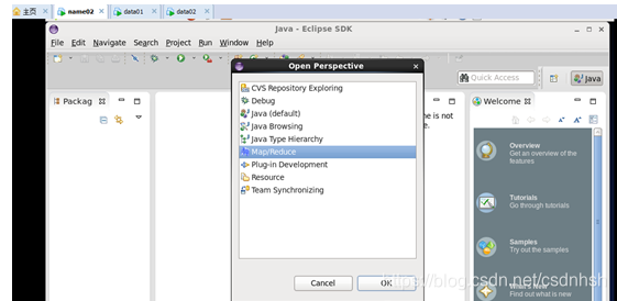 选择Map/Reduce,点击OK,在右下方看到有个Map/Reduce Locations的图标,如下图所示: