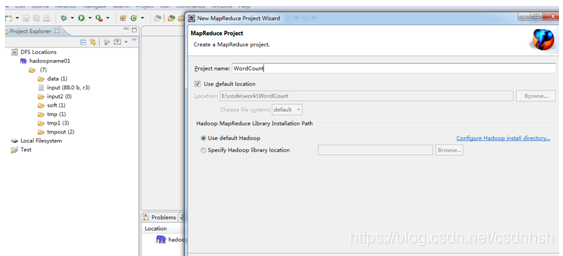File—>Project,选择Map/Reduce Project,输入项目名称WordCount等。