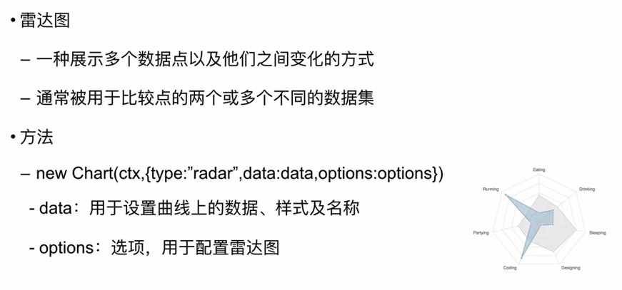 曲线图 柱状图 饼图 雷达图 极地区域图 环形图