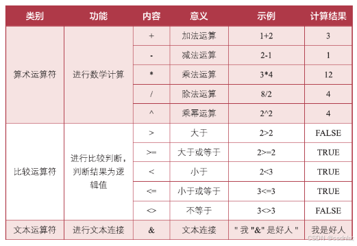 表格工具运算方式: