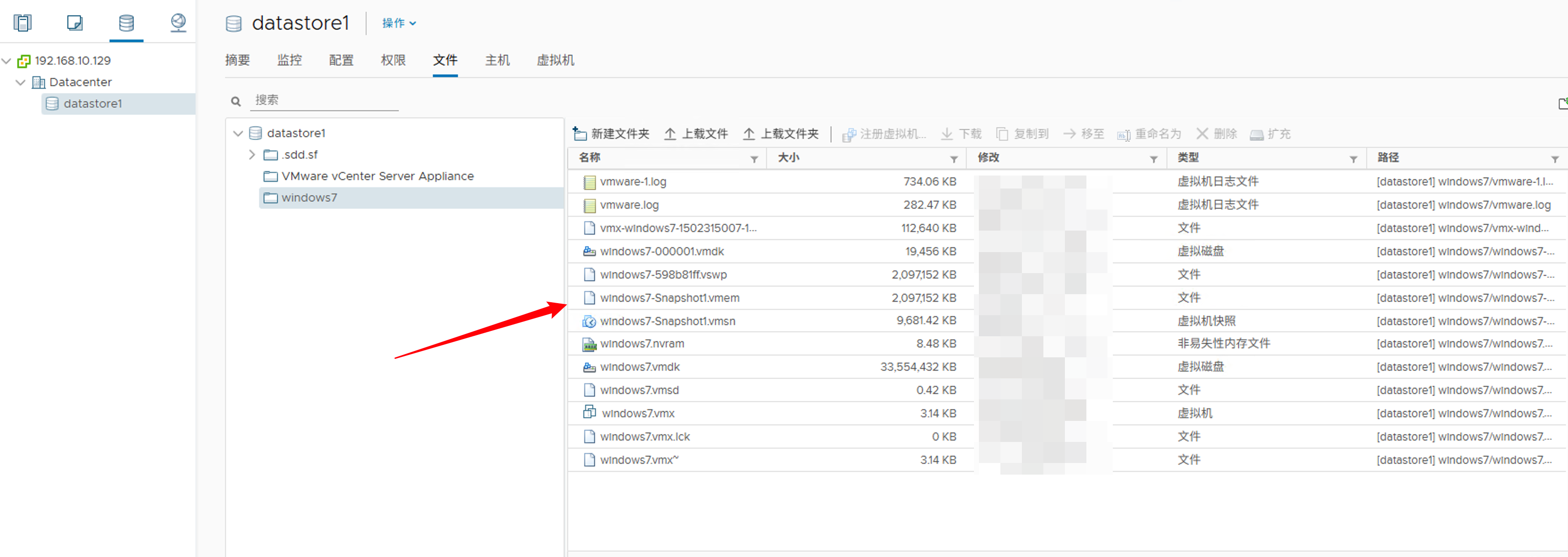 这个虚拟机快照很快就做好了,然后去存储位置里面去找,下载文件: