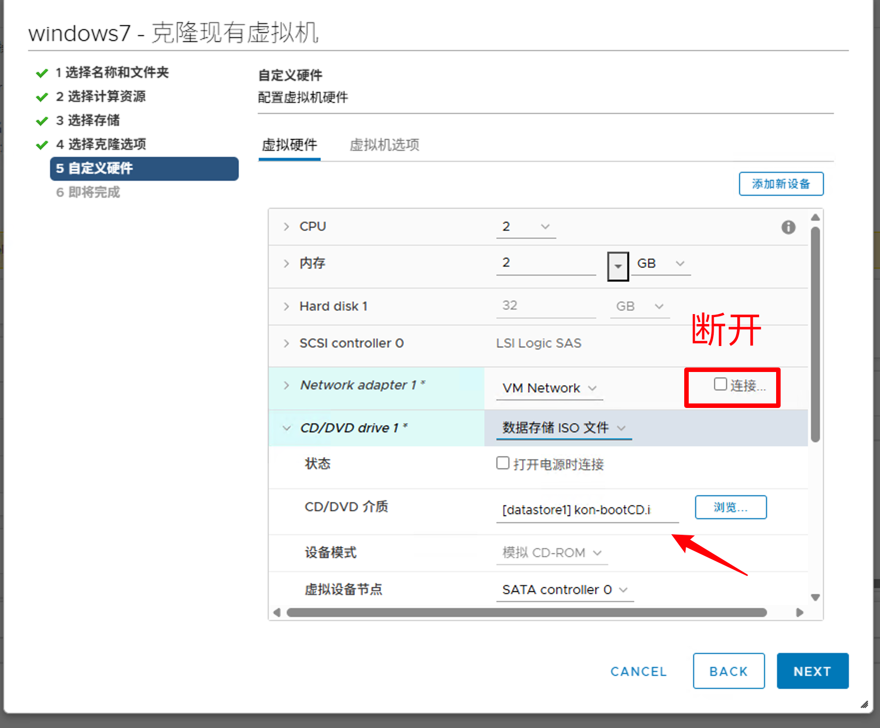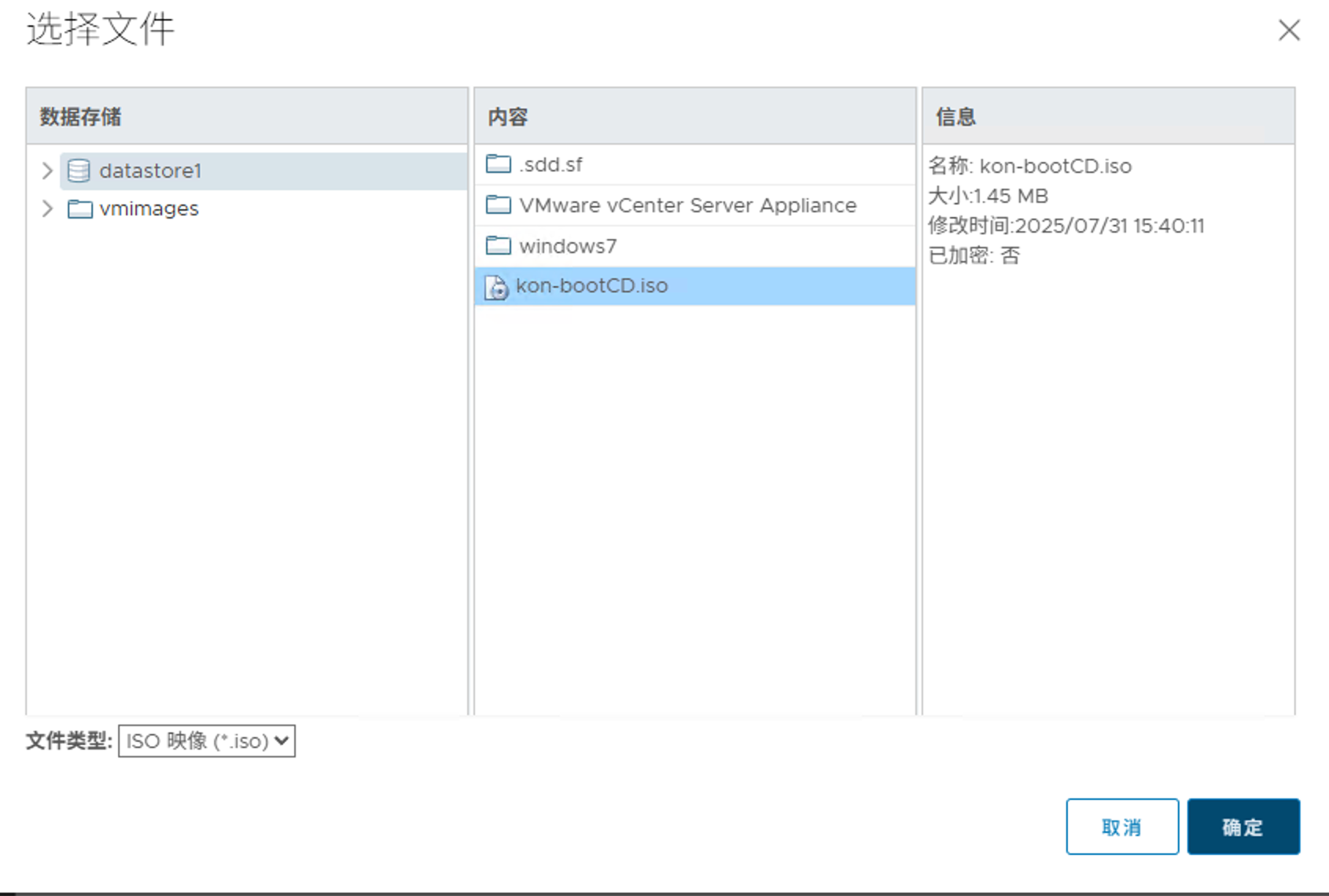 将KON-BOOT的iso镜像(非常的小)上传到vcenter的某一个磁盘中,克隆虚拟机,将克隆的CD/DVD处镜像更换成KON-BOOT的iso文件,再启动。