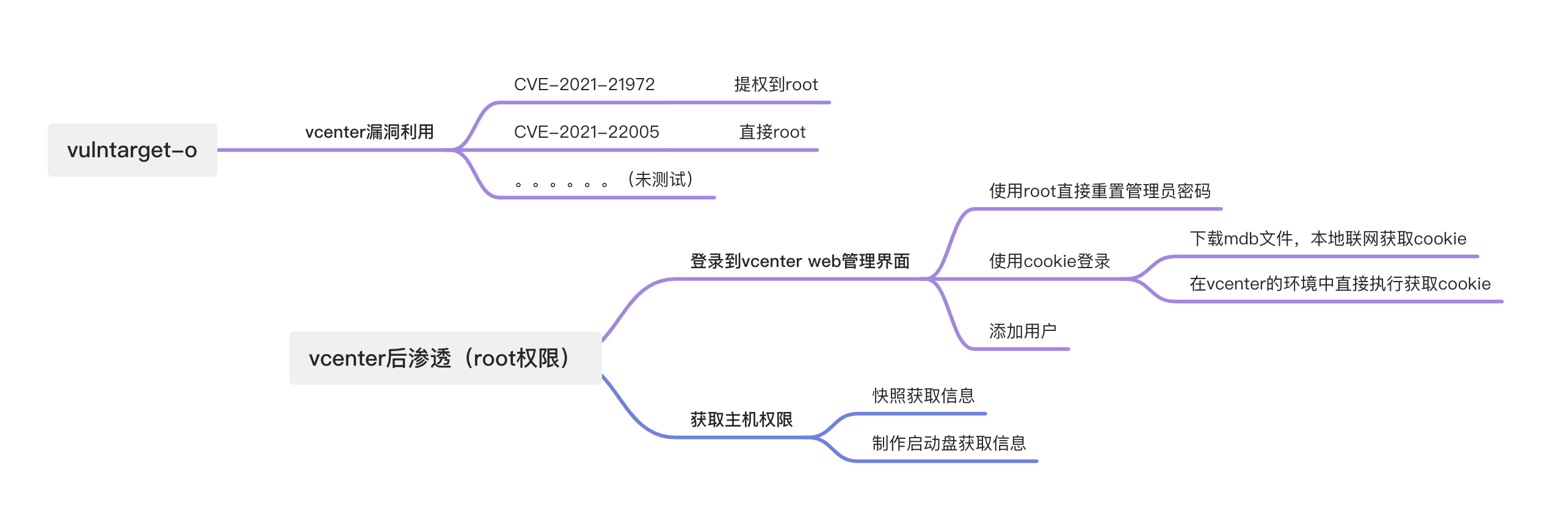 Vulntarget-o里面主要是练习Vcenter的漏洞利用、后渗透技术等,本文只用了一些简单粗暴的方法来完成打靶任务,希望各位师傅能够多试试其他的方法,巩固练习提升自己。