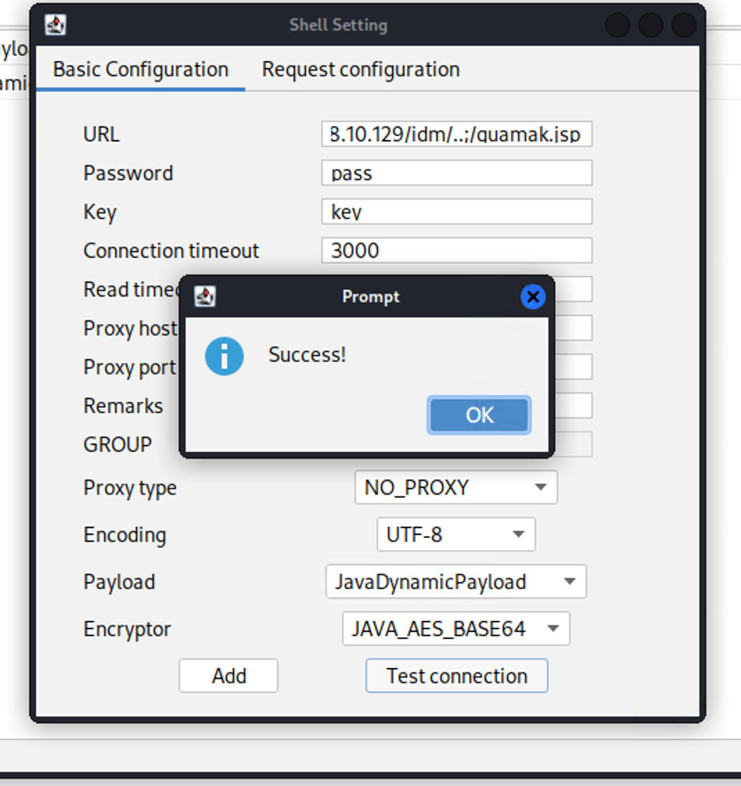 那就直接拿shell吧,在这里使用哥斯拉生成一个jsp的木马,然后执行后连接:
