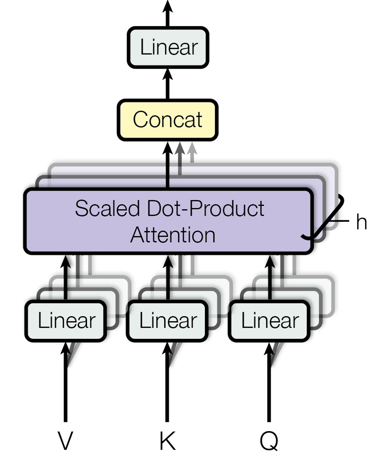 在计算上,多头注意力属于多个单头注意力计算结果的组合,相当于并行计算多个单头