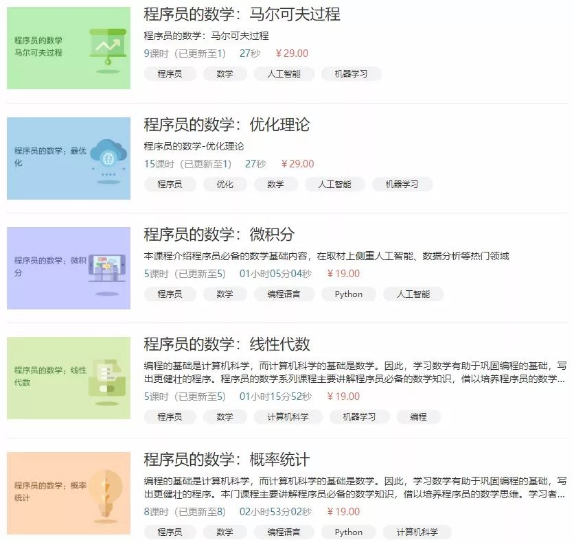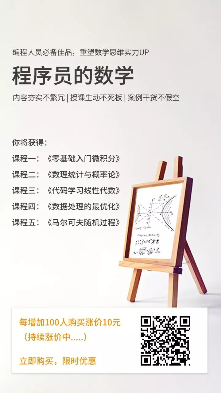 提升编程实力,从掌握数学思维开始。本课程由帝国理工学院王文凯老师打造,涵盖42讲,5门课程,专为程序员设计。内容侧重于人工智能与数据分析,帮助你突破职业瓶颈,轻松入门AI。现上新价29元,加入专属社群,享受老师亲自答疑。