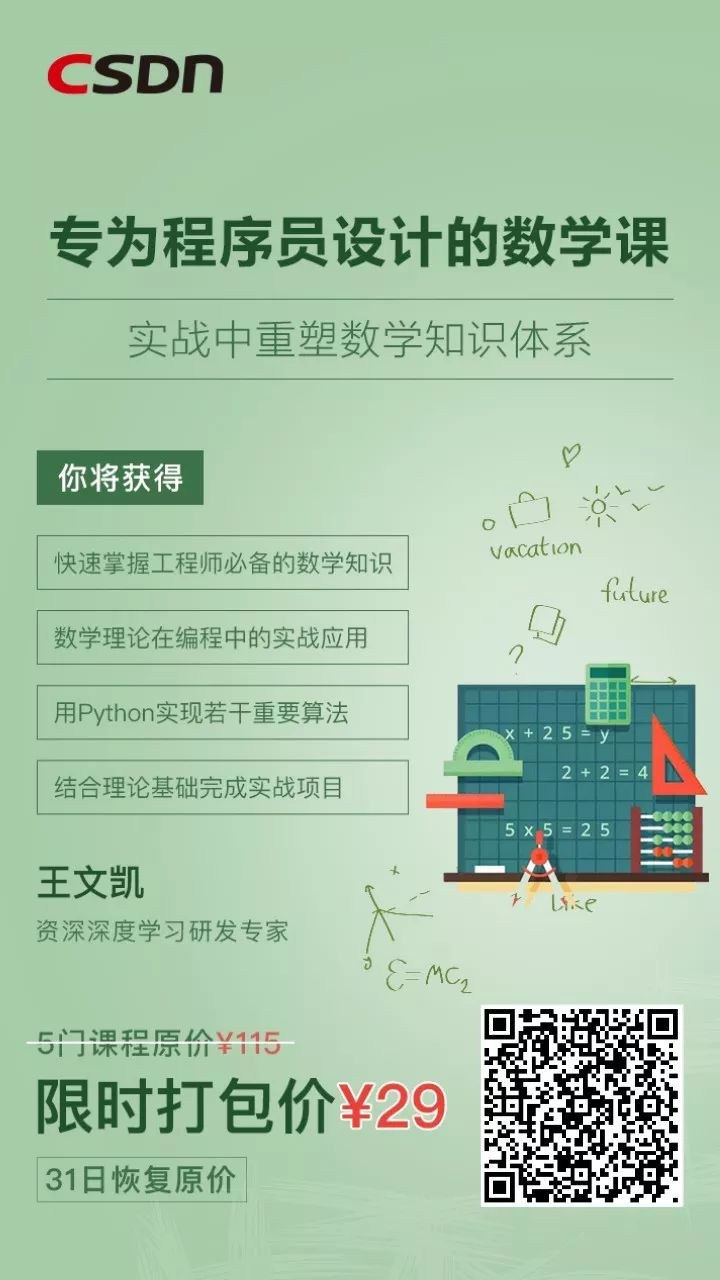 对了,目前课程上线一个月内享受的是早鸟价,使用优惠码【pyq08】仅售24元,截止至本月底将会恢复原价115元,还有不到8天的时间,想要学习数学的,建议尽快:扫描下方二维码报名