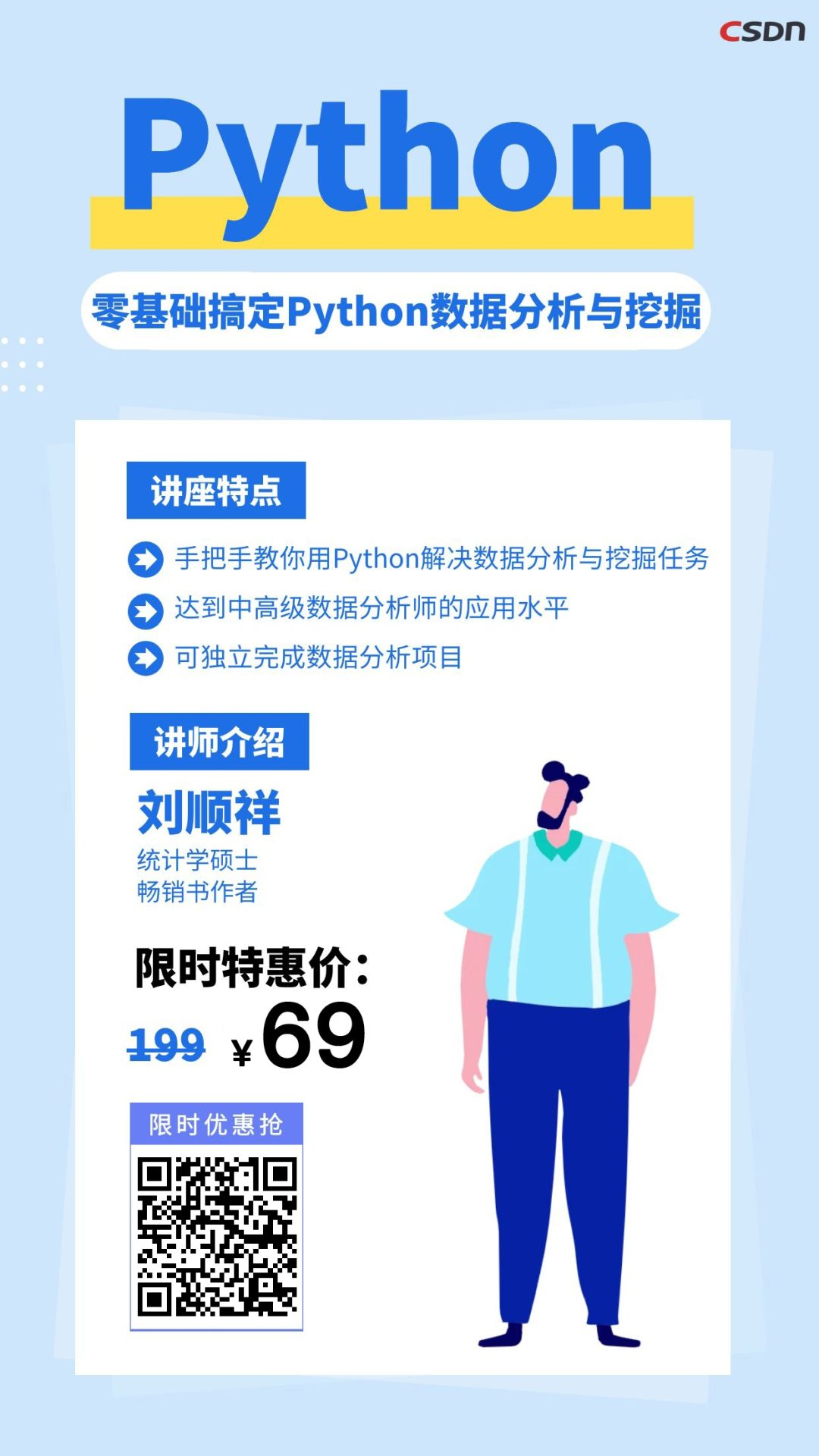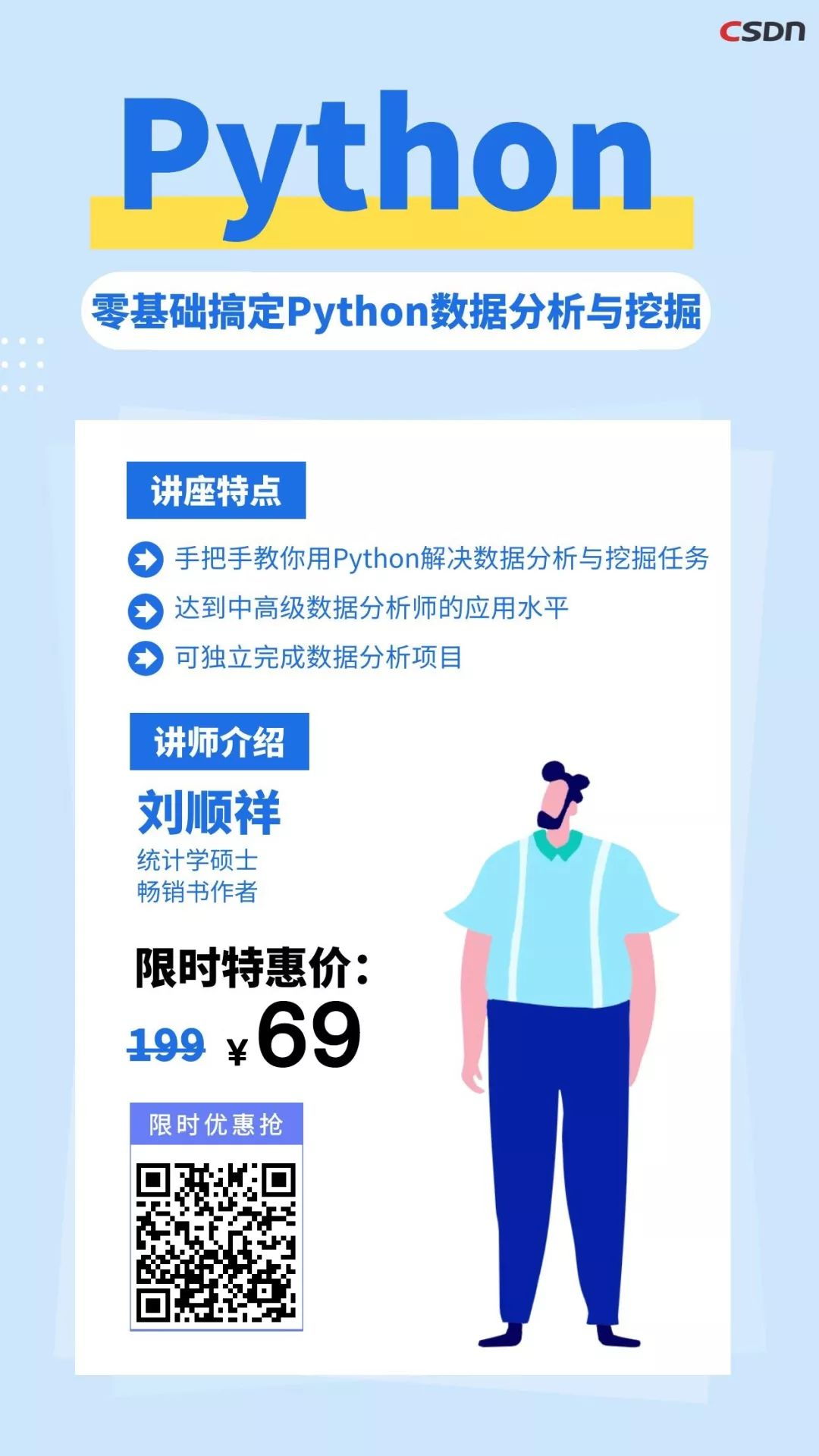 刘顺祥 | 统计学硕士,畅销书作者。目前就职于某大型数据咨询公司,曾担任唯品会大数据部高级数据分析师一职,曾在云像数据咨询公司担任数据分析师,为联想、亨氏、美丽田园、网鱼网咖等企业提供项目服务。