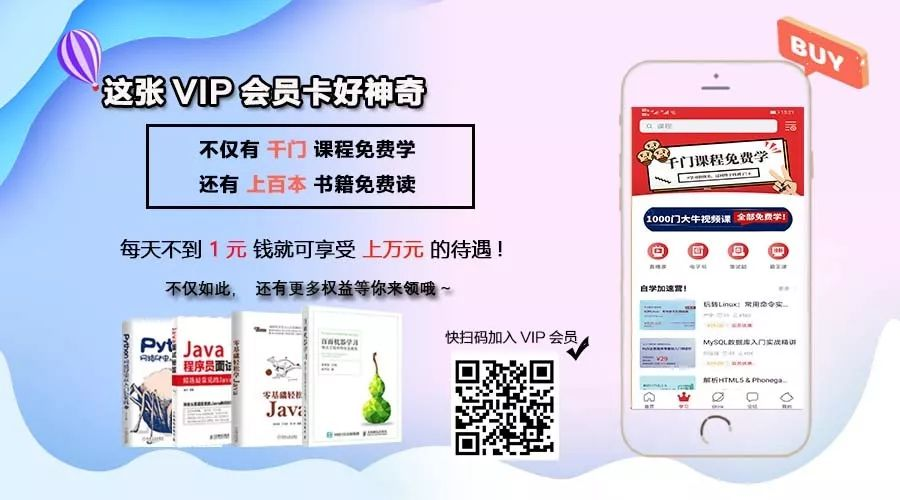 这不是一张简单的会员卡,拥有这张会员卡,上千门课程免费学,上百本技术书籍电子版免费看,不仅如此,还有更多的权益等你领,快来扫码看一下,这个卡值得你拥有!
