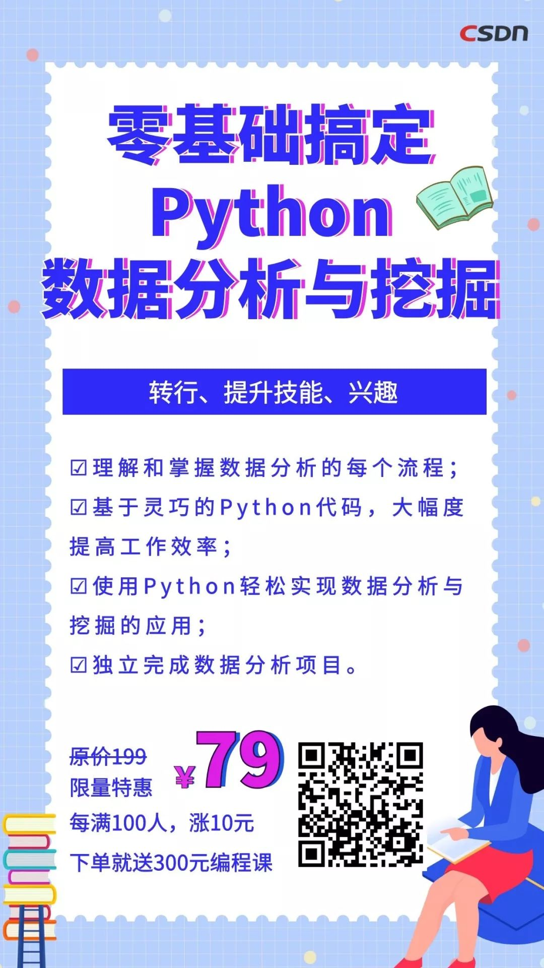 由于成本问题,只有2000个名额,每满100人,课程涨价10元,现在下单还可免费领取300元编程课程大礼包。