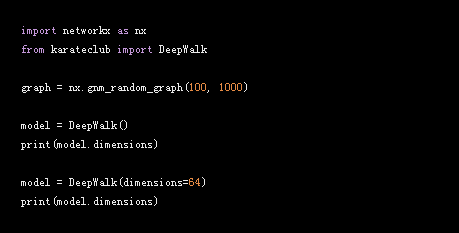 我们可以对这个示例进行修改,通过更改模型导入和构造函数以最小的工作量创建嵌入的walklet,这些修改将产生下面的代码片段。