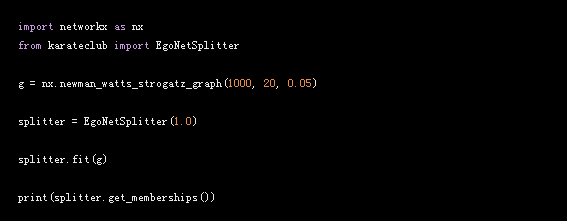 空手道俱乐部使现代社区检测技术的使用变得非常容易(可参阅此处的随附教程:https://karateclub.readthedocs.io/en/latest/notes/introduction.html)。下面的代码段在合成图上使用了重叠的社区检测算法。