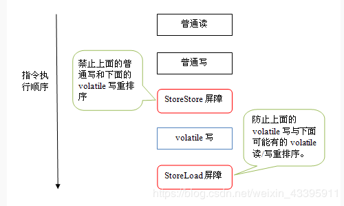 下面是保守策略下,volatile写插入内存屏障后生成的指令序列示意图: