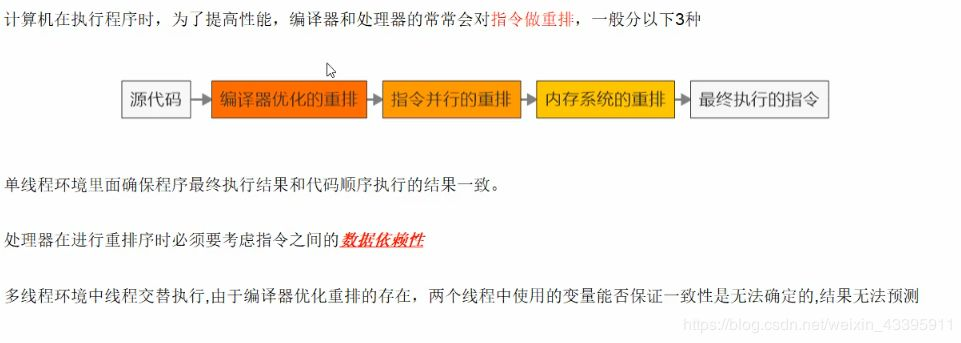 JMM规范中要求保证有序性,看看以下的解释: